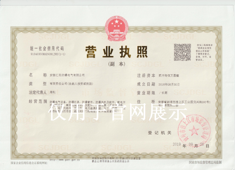 安徽匯民防爆電氣有限公司企業名片